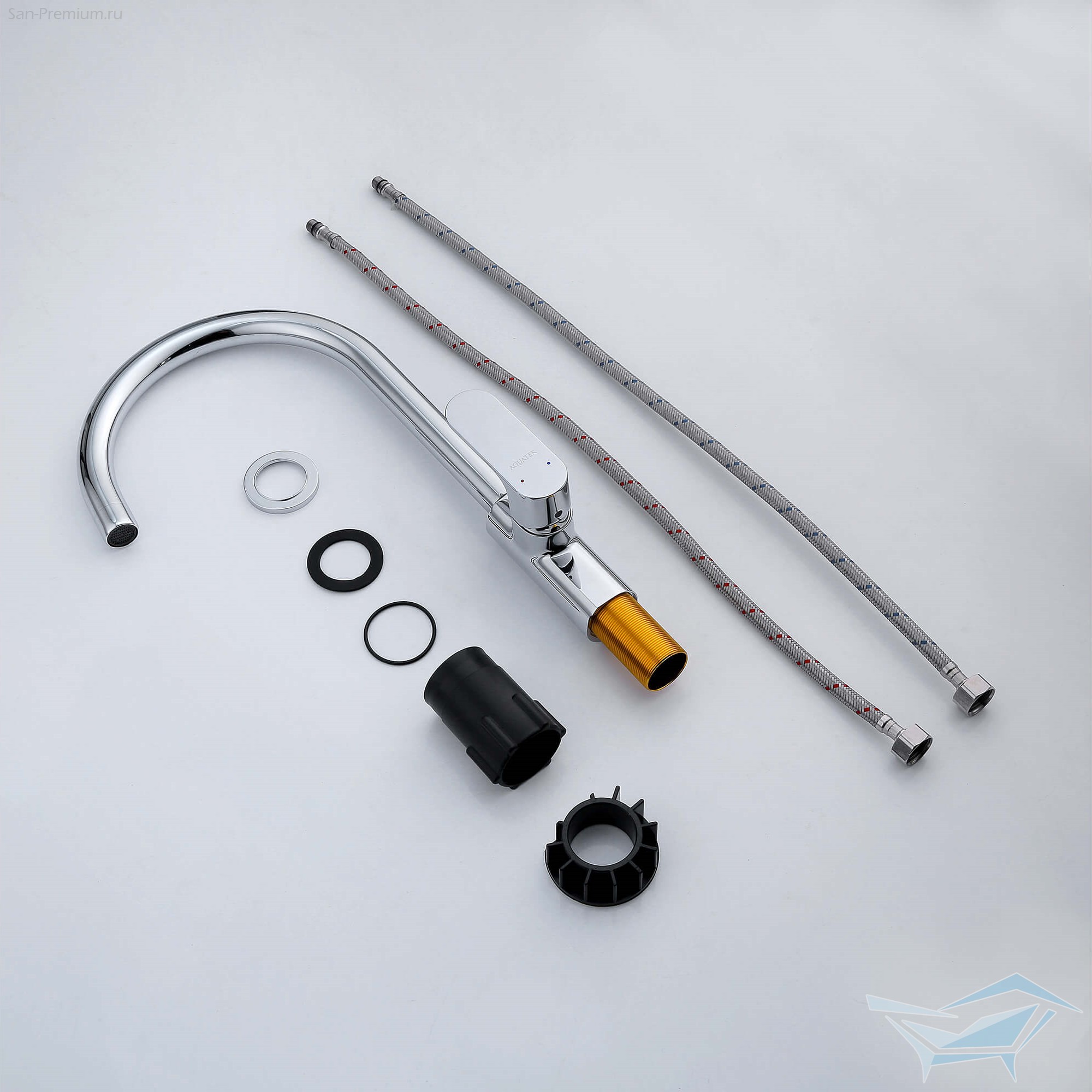- Комплектация: смеситель, гибкая подводка, монтажный комплект