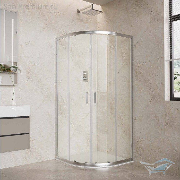 Стильный и функциональный душевой уголок в форме четверть круга, размером 900 x 900 мм, со сдвижными дверями — идеальное решение для современной ванной комнаты!