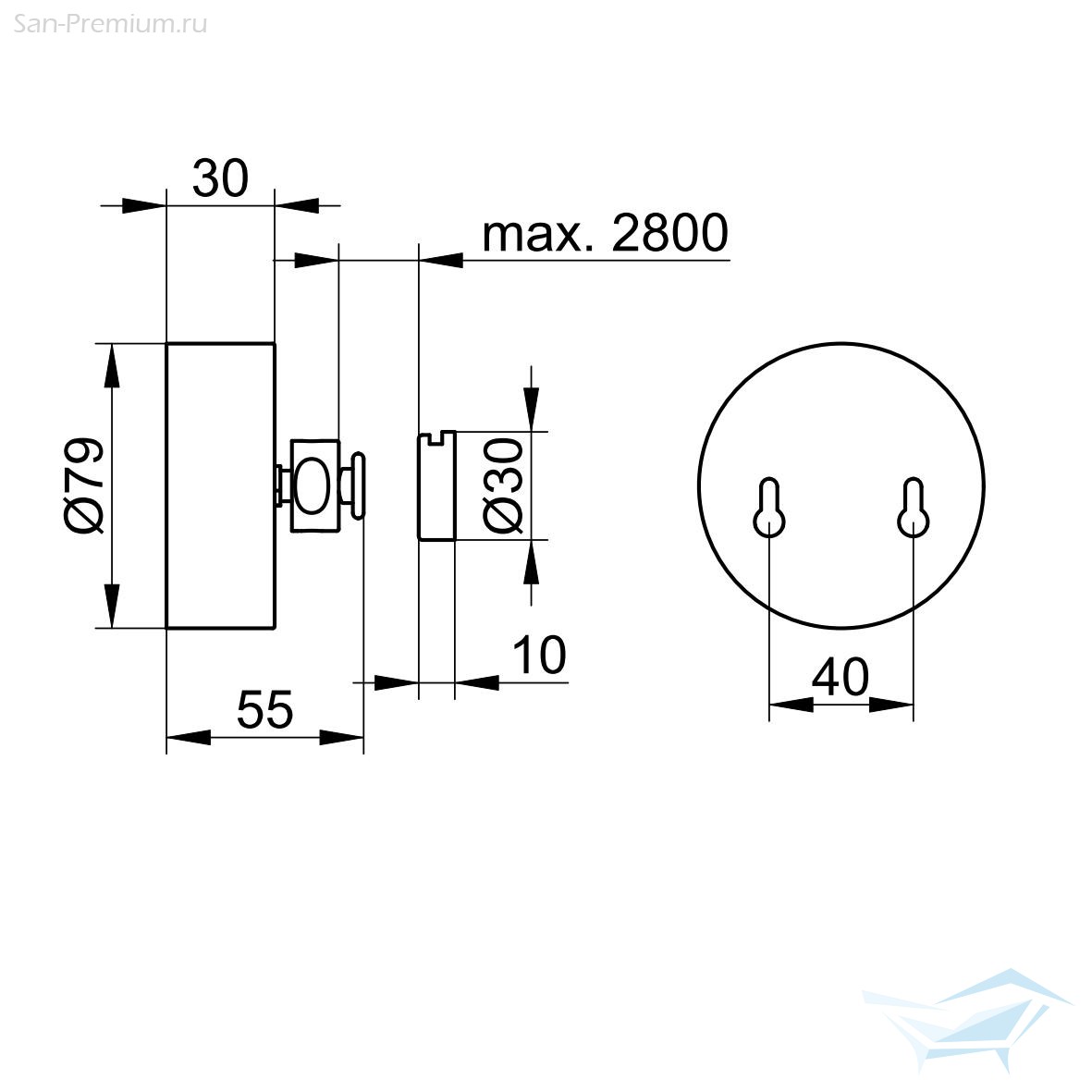 Верёвка для белья Keuco Plan, в комплекте с держателем, вытягивается до 2.8м, хром 04979010001
