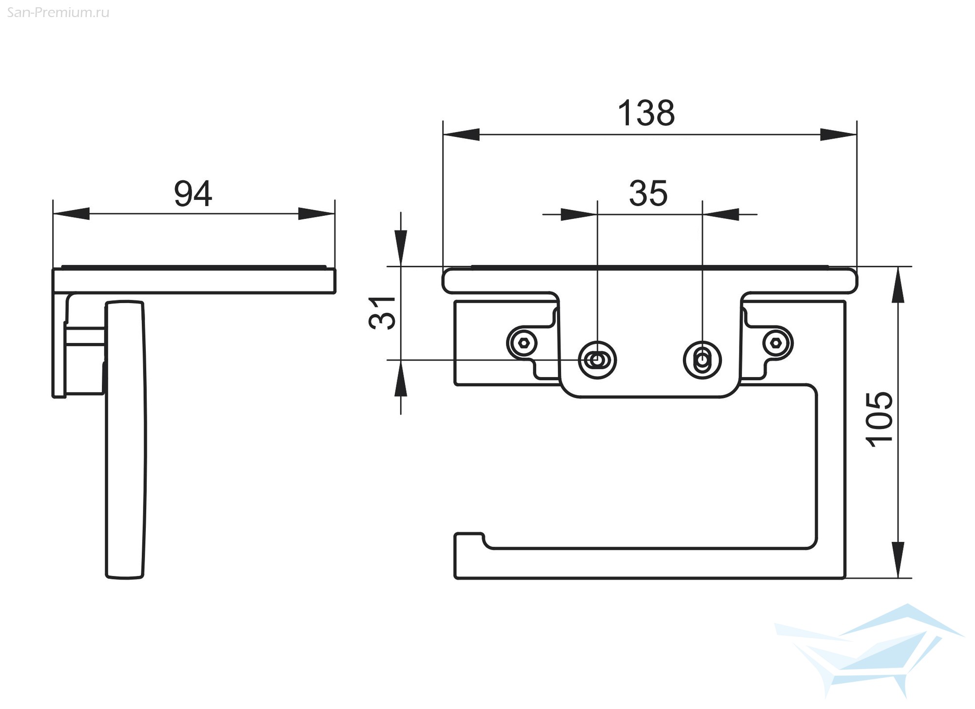 - Комплектация: монтажный комплект, бумагодержатель, полка
